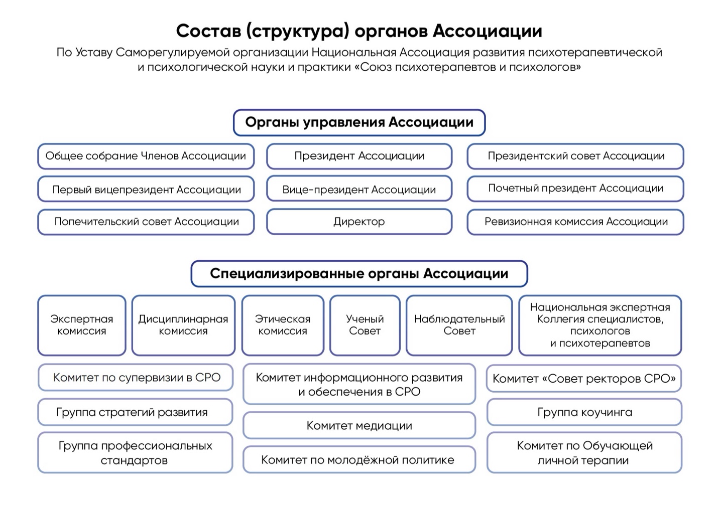 Важно обратить внимание, что органы управления Ассоциацией состоят из членов ассоциации. Согласно нашему Уставу; не являющиеся членами Ассоциации могут входить только в президентский и попечительский Советы Ассоциации.